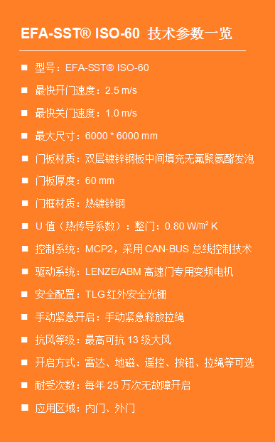 上一个产品:EFA-SST® TK-100 冷库专用高速螺旋卷门