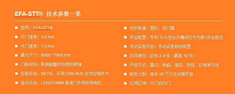 下一个产品:EFA-SRT®Soft Touch 防撞型高速软帘门