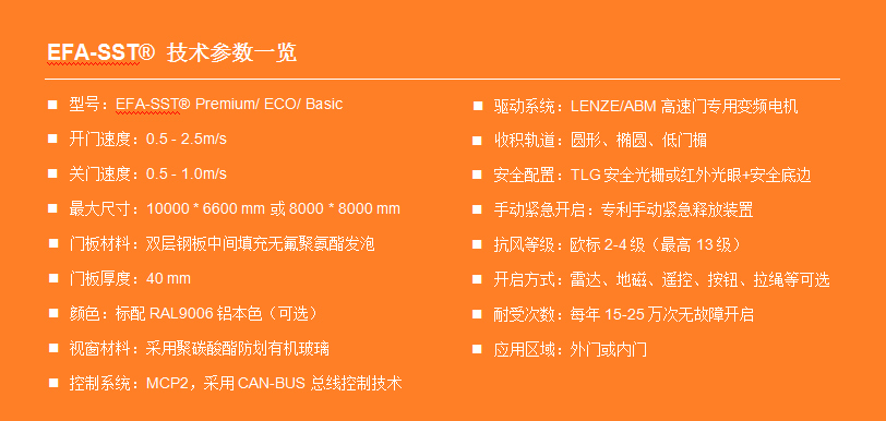 下一个产品:EFA-SRT®Soft Touch 防撞型高速软帘门